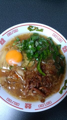 こちらは,年末の徳島での飲み会帰りにSAで買った徳島ラーメンに,具を加えたもの.
