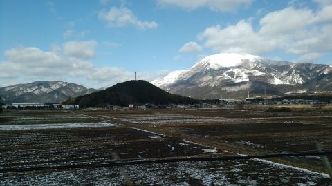 雪の伊吹山を眺めながら大阪方面に移動していく.