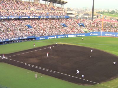 この日は巨人ファンである俺が,初めて巨人戦を見ることになった日である.野球を見始めた'94年には愛媛に新しい野球場ができるとは思わなかったが,それが'00年遂に現実のものに.'02年にオールスターが開催され,去年には巨人が松山に半世紀振りに来た(vs横浜).去年は用事が多く,その試合を見られなかったが,今年地元観戦を実現させた.